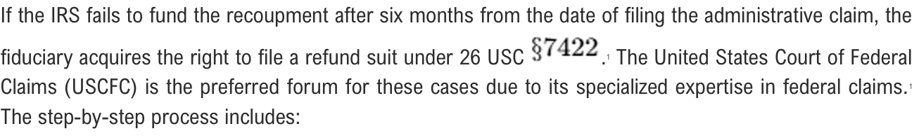 Once the IRS processes the 1041 return and authorizes the refund, funds are disbursed via the federal payment network. For recoupments under $1 million, the funds are typically sent via Automated Clearing House (ACH). For larger amounts, such as the $4.4 million Clifford WTT recoupment, disbursement is made via Fedwire following the submission of Form 8302. The funds are received into a master-sub-account architecture designed for institutional scale.
