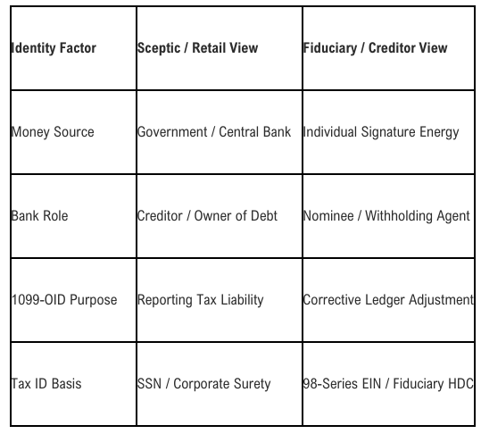 The primary obstacle to widespread credit recoupment is often framed not as legal or technical, but as jurisdictional. Sceptics operating from a "debtor's mindset" often fail to distinguish between the public view of tax and the private fiduciary view of credit energy. The recruitment of abandoned credit is not an act of tax evasion, but a rigorous administrative correction of nominee misreporting that utilizes the system's own rules—specifically Revenue Procedure 2002-26—to redirect conscious energy back to its true originator.