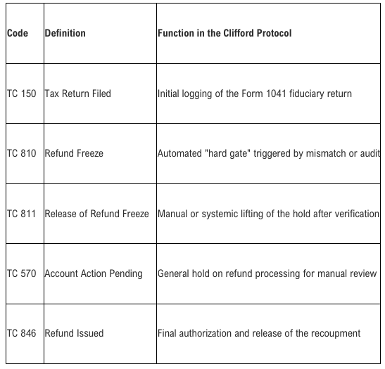 The Clifford Protocol and associated fiduciary strategies utilize the doctrine of Clausula Rebus Sic Stantibus (things thus standing) to renounce the unwanted agency relationship with the state-created persona. By reoccupying the office of General Executor over the decedent estate, the living soul takes control of the liabilities and assets associated with that persona, establishing a 98-series International Grantor Trust to operate "off-board" from the corporate debtor system. This jurisdictional correction is a prerequisite for interacting with the federal Original Issue Discount (OID) system as a creditor rather than a debtor. When an individual uses their SSN to file, the IRS algorithm is hard-coded to recognize the filing as an operation of the corporate debtor, which often triggers Transaction Code (TC) 810 Refund Freezes because the system assumes a debtor lacks the standing to reclaim assets.