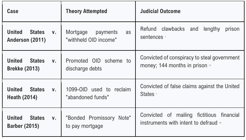 - Obstruction Charges: In cases like United States v. Veral Smith, filing false IRS forms and fictitious obligations against prosecutors and judges led to sentencing enhancements for obstruction.