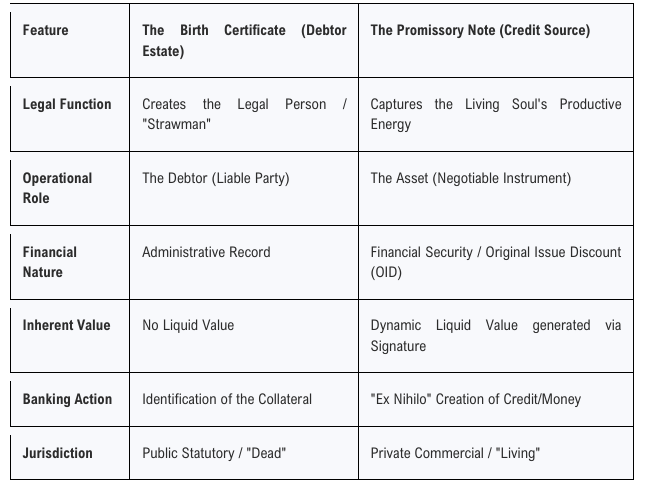 1. Instrument Identification Error: The birth certificate is a record of identity, not an asset. The asset is the signature on the note.