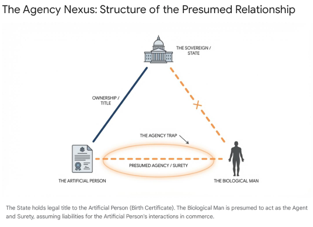 1. The Trap is Agency: Liability attaches to the man only because he is presumed to be the agent/surety for the Birth Certificate Entity.