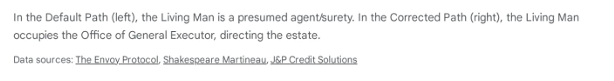Finally, the report explores the doctrine of executor de son tort—the "executor of his own wrong"—to explain the role of the State (or Crown) in administering these estates in the absence of a competent living claimant. It concludes with a detailed examination of the "Envoy Protocol" and "Asset Fortress Protocol," frameworks proposed to solve this jurisdictional dilemma by severing the presumed agency and correcting the capacity of the individual from debtor/surety to General Executor/creditor.
