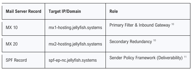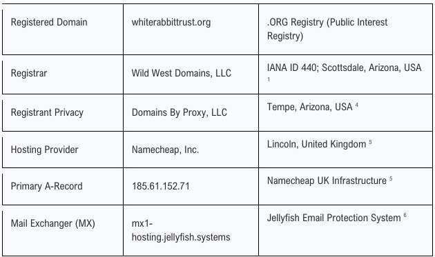 The mail infrastructure of the White Rabbit Trust utilizes the jellyfish.systems environment, which is a proprietary email security and filtering ecosystem developed by Namecheap.6 The MX records point to mx1-hosting.jellyfish.systems, which acts as a sophisticated gateway for all incoming and outgoing communications.