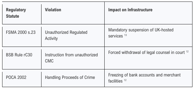 By admitting that EtP acts as a conduit for these claims, Goldberg has provided prima facie evidence that he is operating an unauthorized Claims Management Company (CMC).12 Operating a regulated activity without FCA authorization is a criminal offense under Section 23 of FSMA 2000.13 This is the most potent weapon for a website takedown because Namecheap’s UK division (based in Lincoln) is subject to UK law and cannot knowingly host a criminal enterprise involved in unauthorized financial services.